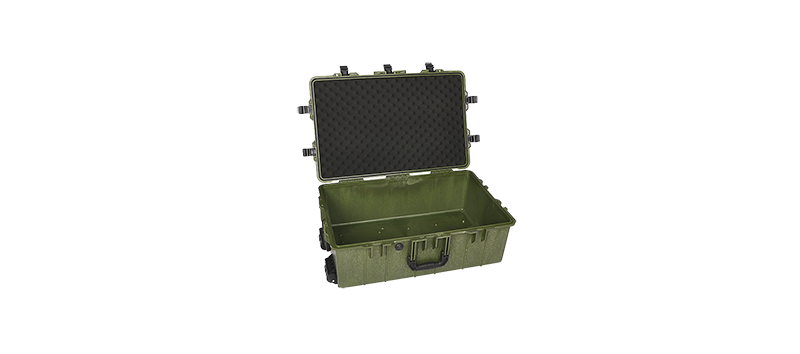 Certified with an IP67 waterproof rating, this case is widely used for storing hardware tools, medical equipment, precision instruments, laptops, and more. It features areas on the lid and back for attaching logos. Equipped with 6 latches, the case remains securely shut until you are ready to open it. The protective case enables you to traverse any terrain with its robust wheels and ergonomically designed handle, ensuring a smooth ride no matter where you go.